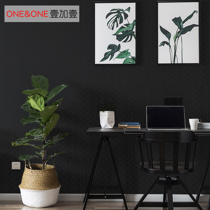 Black wallpaper bedroom restaurant creative personality non-woven pure black wallpaper European black background wall Nordic