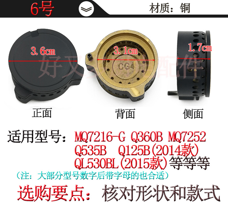 No. 1 new small fire cover No. 2 double row hole small fire cover 3 Number 635 series small fire cover No. 4 501 no needle small fire cover 5 Number 636 with pin small fire cover 6 Number 7216 Series 7