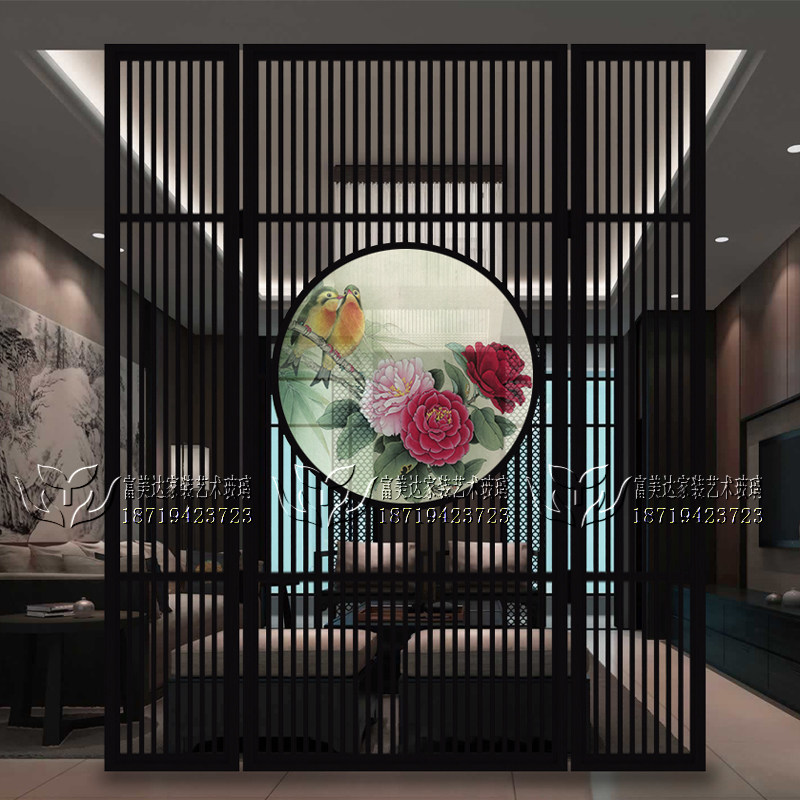 Custom-made new Chinese art glass round partition double-sided screen matte translucent modern simple living room entrance 3d