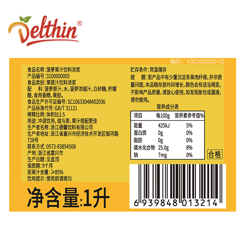 Dexin concentrated pineapple juice 1L pineapple flavor concentrated fruit juice commercial beverage concentrated milk tea shop special raw materials