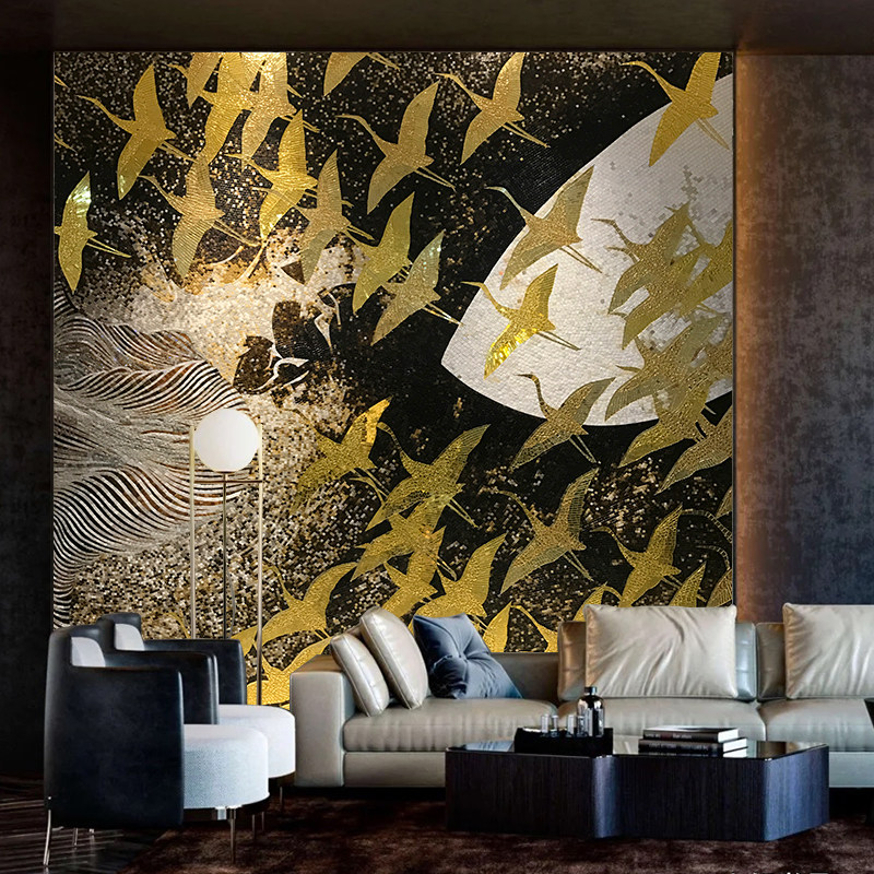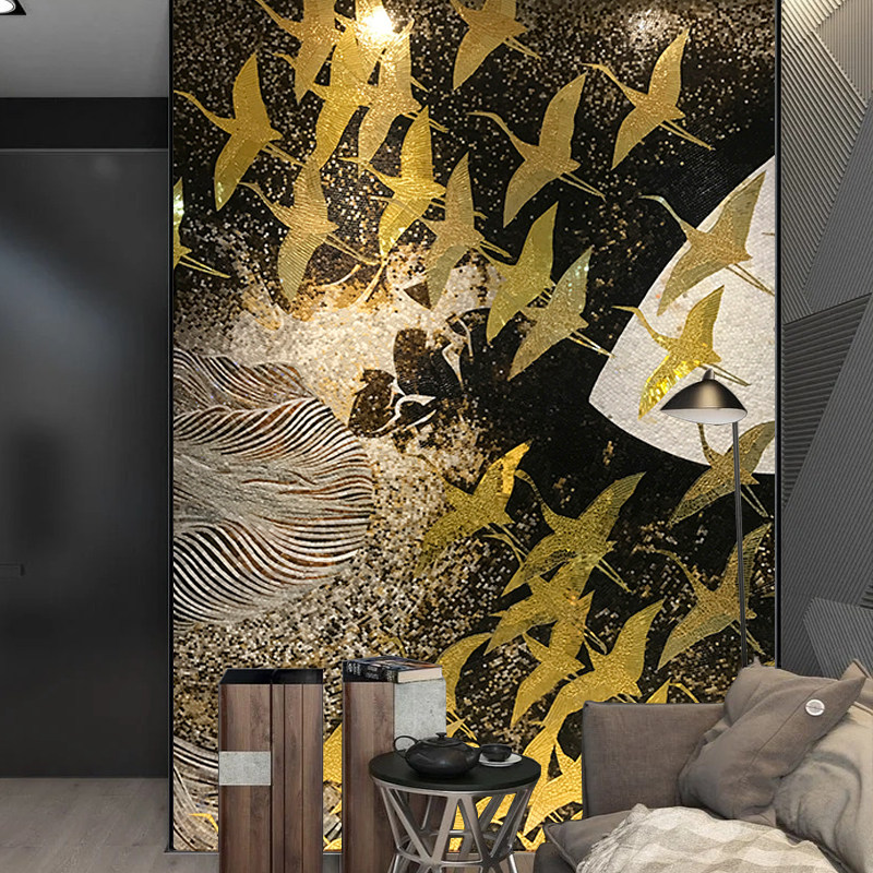 Idealistic ice Jade cut painting mosaic background wall golden porch living room club decoration custom puzzle parquet building materials