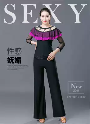 All-match women's slim-fit Latin national standard dance tap dance pants Thin modern social dance wide-legged wide pants