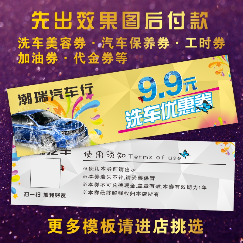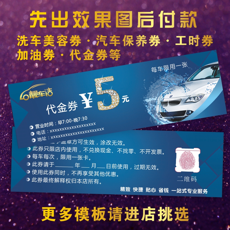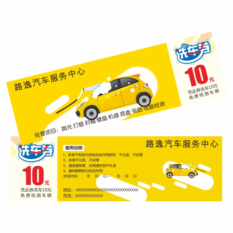 Car wash coupon printing design and production Free car wash coupon custom car beauty coupon maintenance voucher
