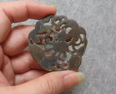 Qing Dynasty white copper hollow dark engraved gourd(more children and more blessings)auspicious pendant has cracks