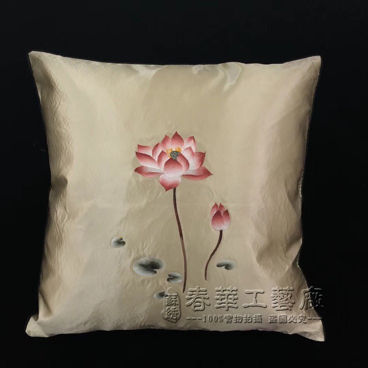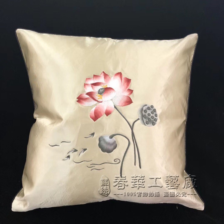 Su embroidery finished silk embroidery Embroidered lotus cushion pillow Household goods Suzhou Silk characteristic business gifts