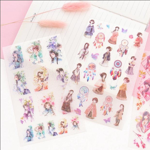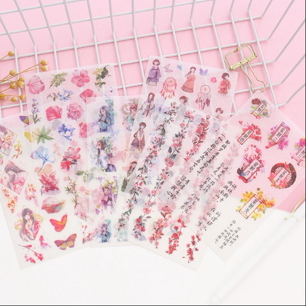 Meritocratic ancient wind and paper stickers translucent Chinese wind Xiaoqing New DIY handbooks Diary Album and Decorative Sticker 6 Zhang