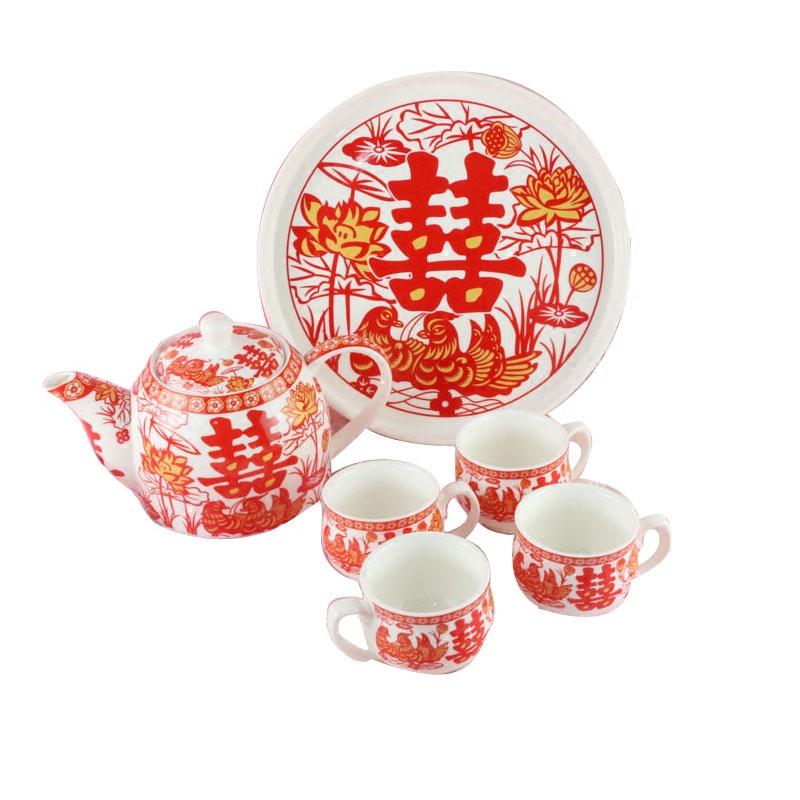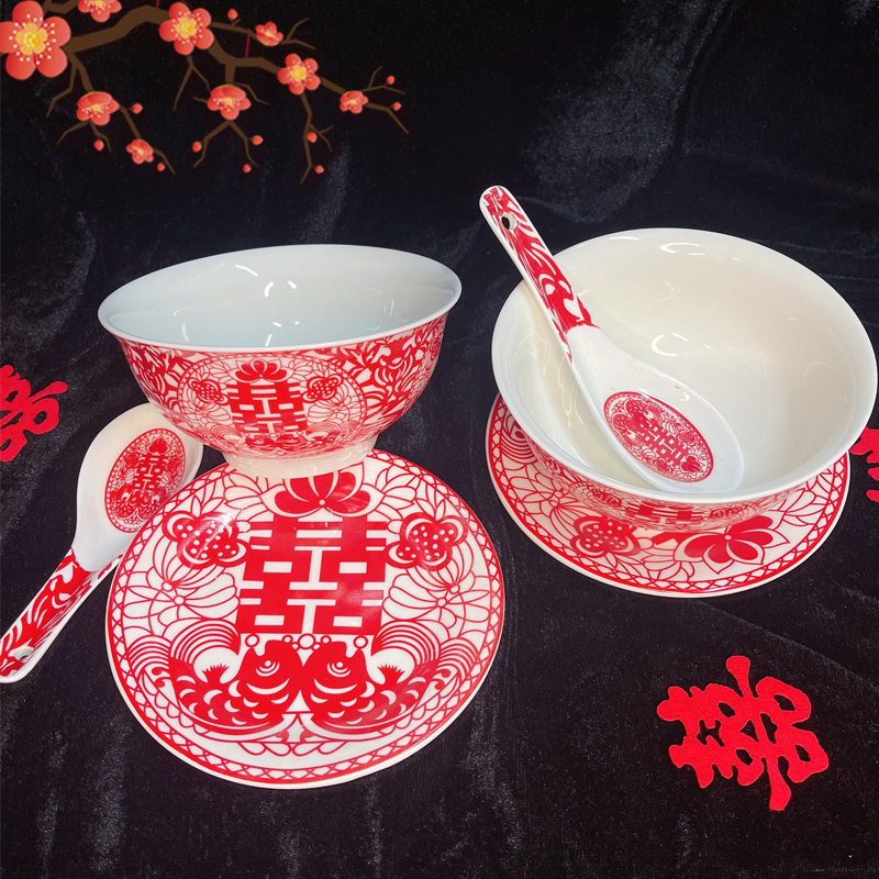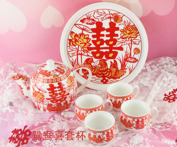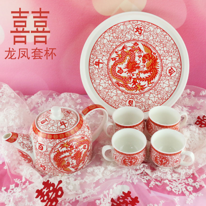 Wedding gifts bowl kit festive wedding dowry bride with double-hui Yao dragon fengjing teacup bowl
