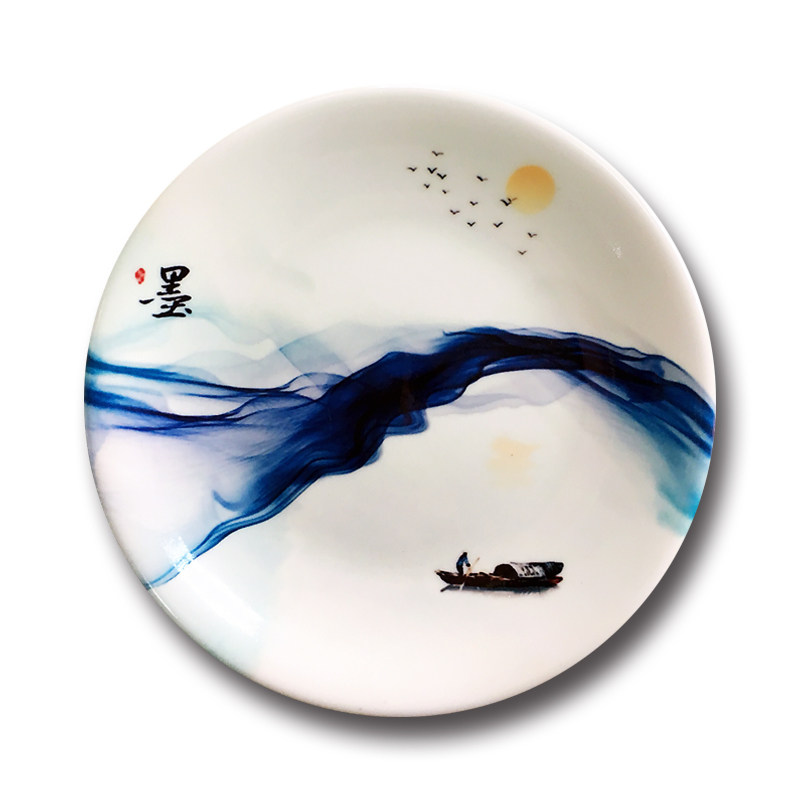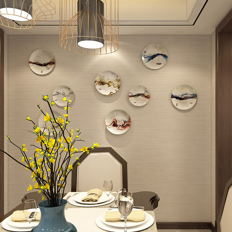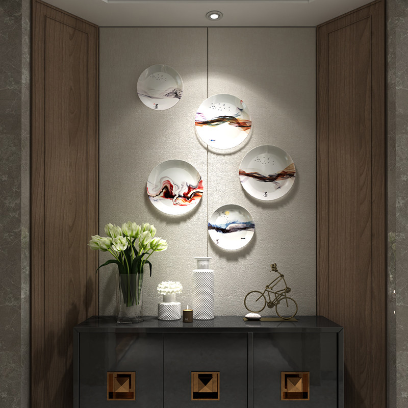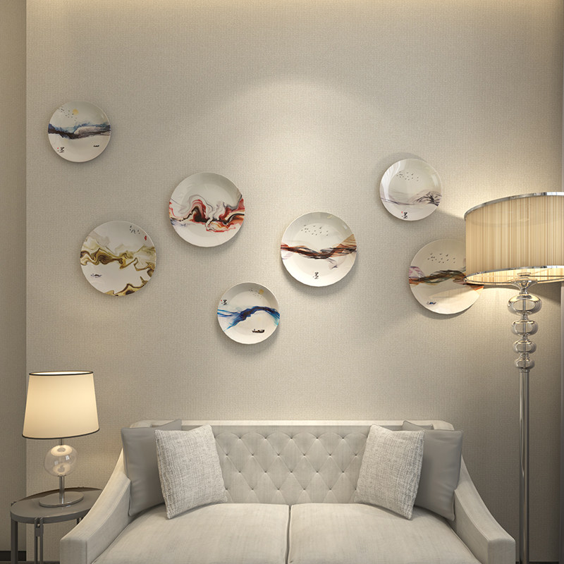 Modern Chinese hotel home wall decoration plate living room background wall hanging plate ceramic plate craft sitting plate