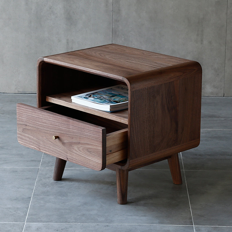 Original Nordic Japanese style solid wood black walnut arc single drawer storage cabinet side cabinet drawer cabinet bedroom furniture