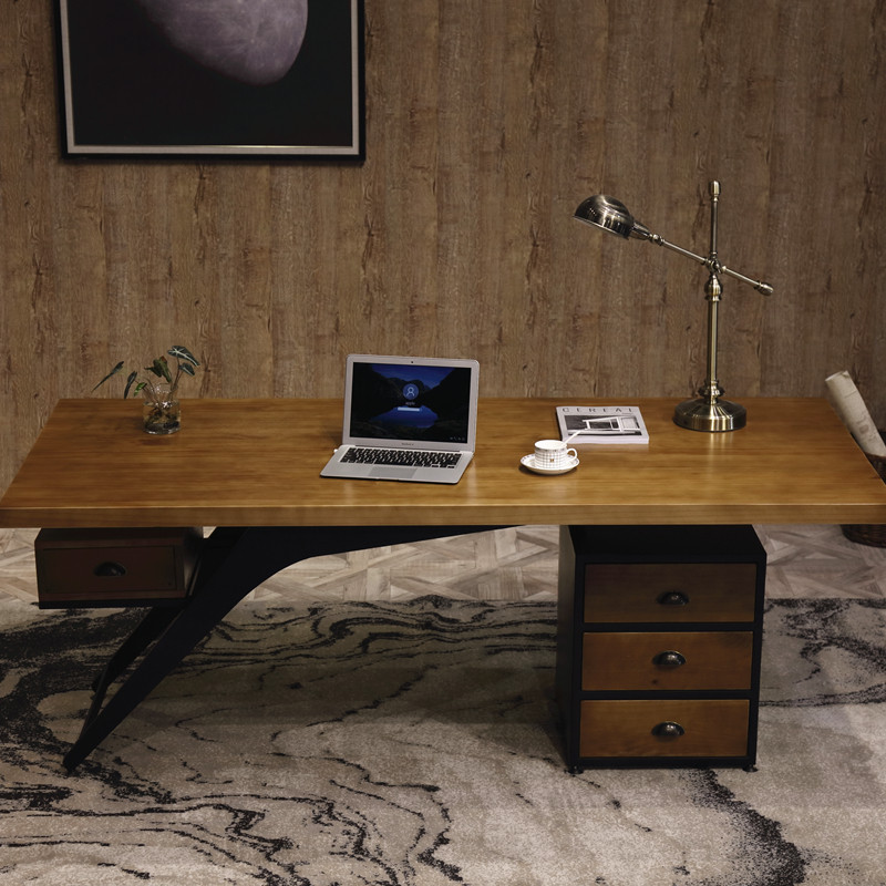Solid Wood Desk Modern Minimalist Industrial Wind Bosses Table Presidents Table Desktop Computer Desk Home Loft Desk