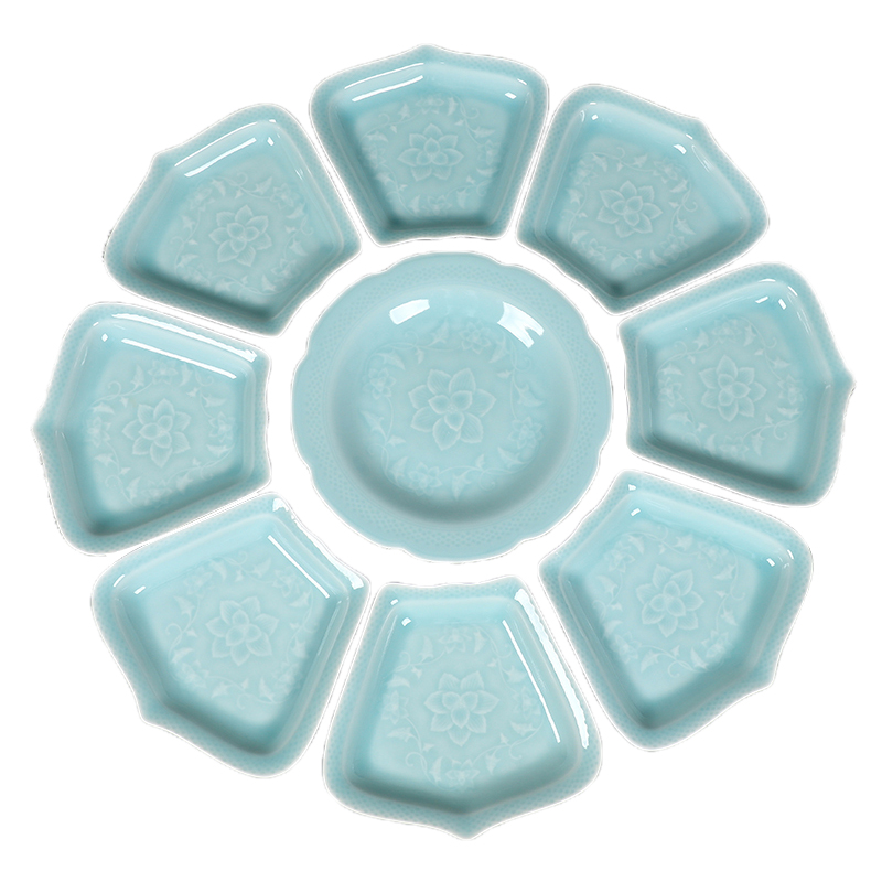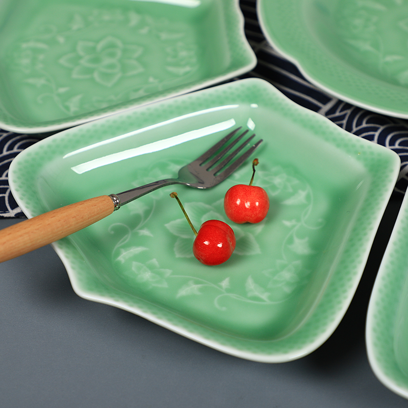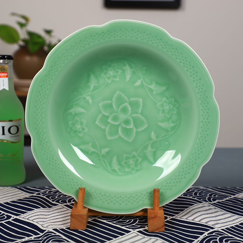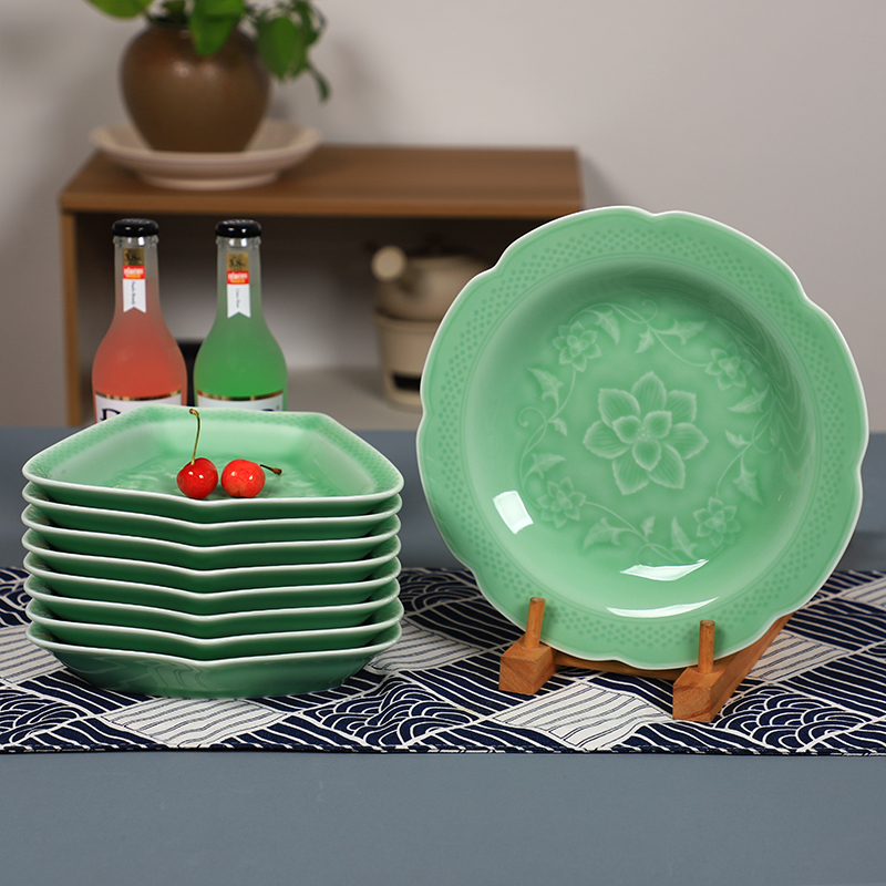 Creative ceramic plate household reunion meal platter tableware set Longquan celadon twisted branch plate large plate