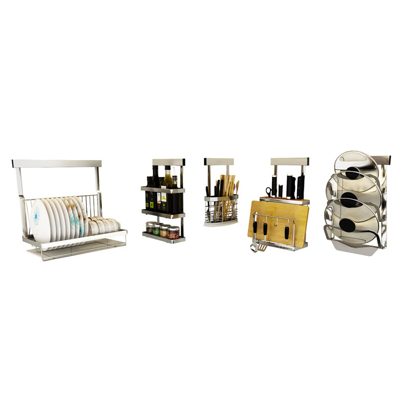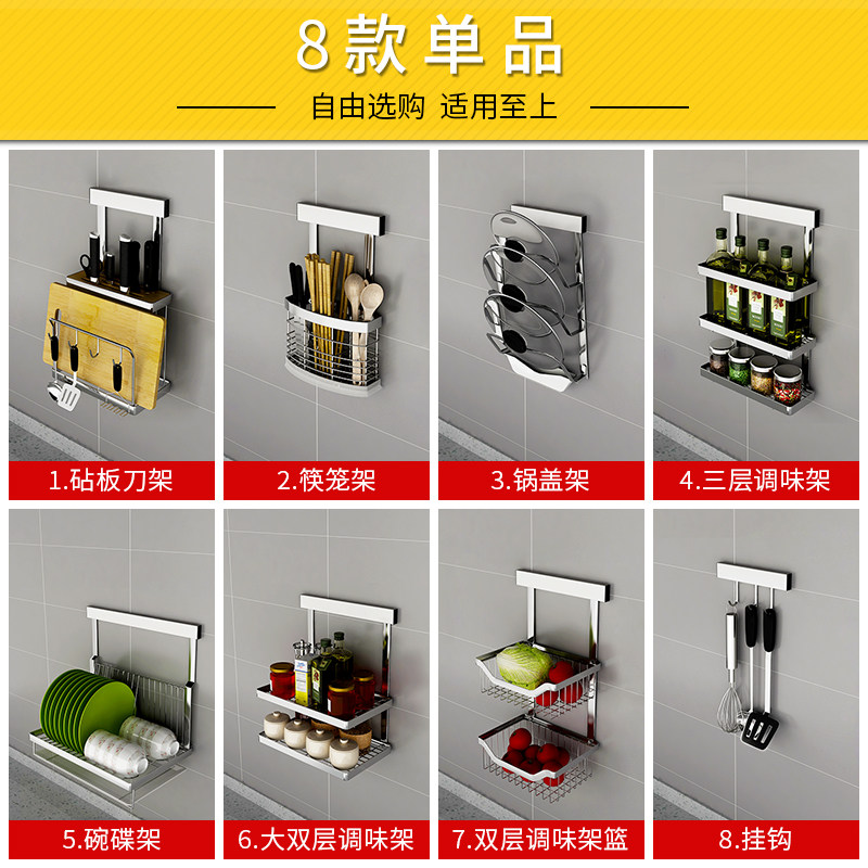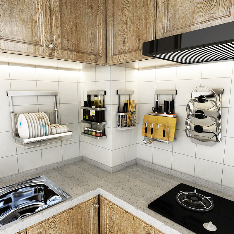 Stainless Steel Bowl Rack 45CM Aluminum Bar Stainless Steel Tool Holder 25CM Aluminum Bar Stainless Steel Lid Rack 25CM Aluminum Bar Stainless Steel 3 Seasoning Rack 30CM Aluminum Bar Stainless Steel Double