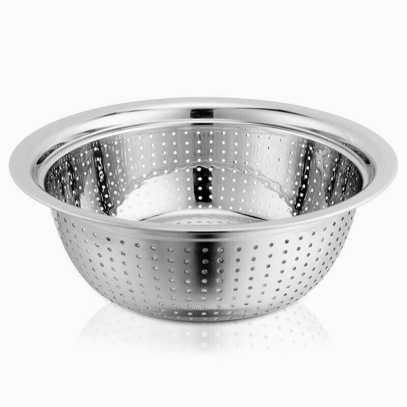 Stainless Steel Wash Basin Wash Rice Basin Domestic Kitchen Vegetable Drain Basin Drain Basin Thickened Round Large Dining Room Fruit Basin