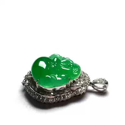 Emerald Buddha pendant Yang green floating flower bracelet ring earrings up fluorescent Guanyin Jieyang Myanmar bag return Jade