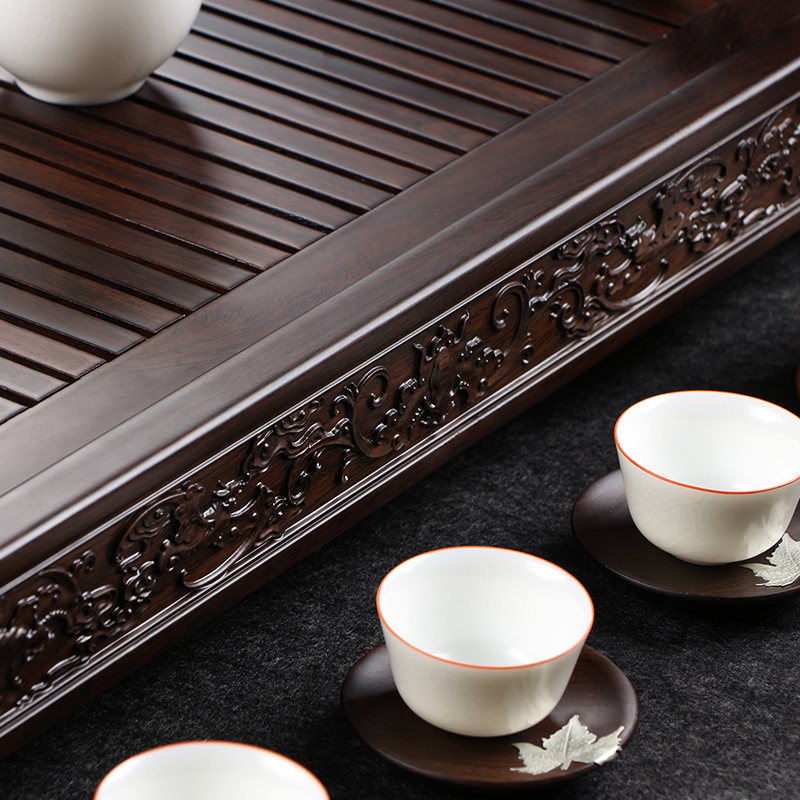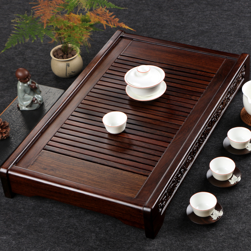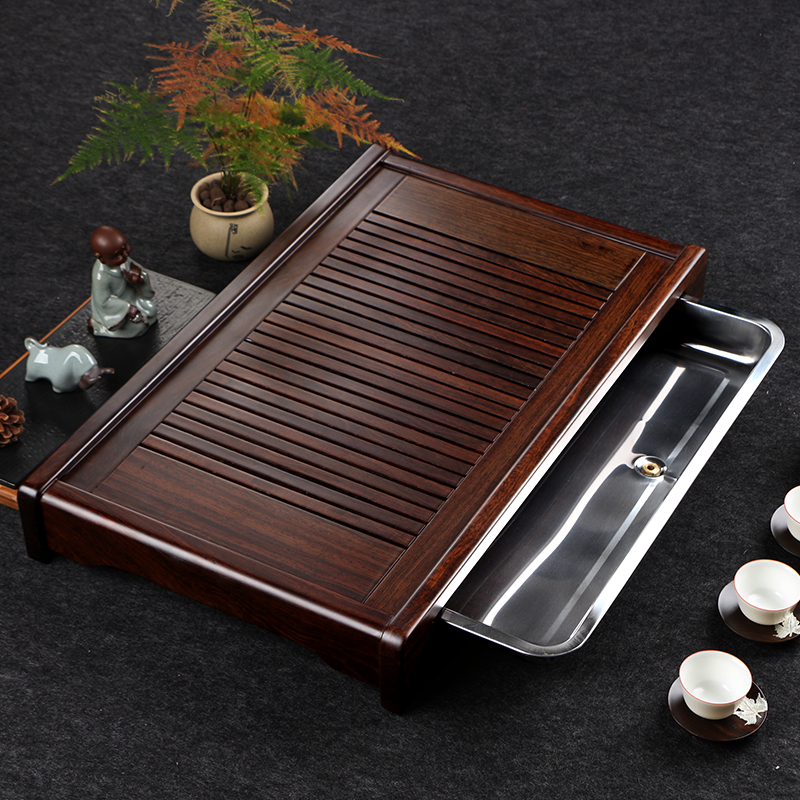God carved ebony tea tray solid wood large, medium and small stainless steel tea tray tea set can store water tea sea home tea table