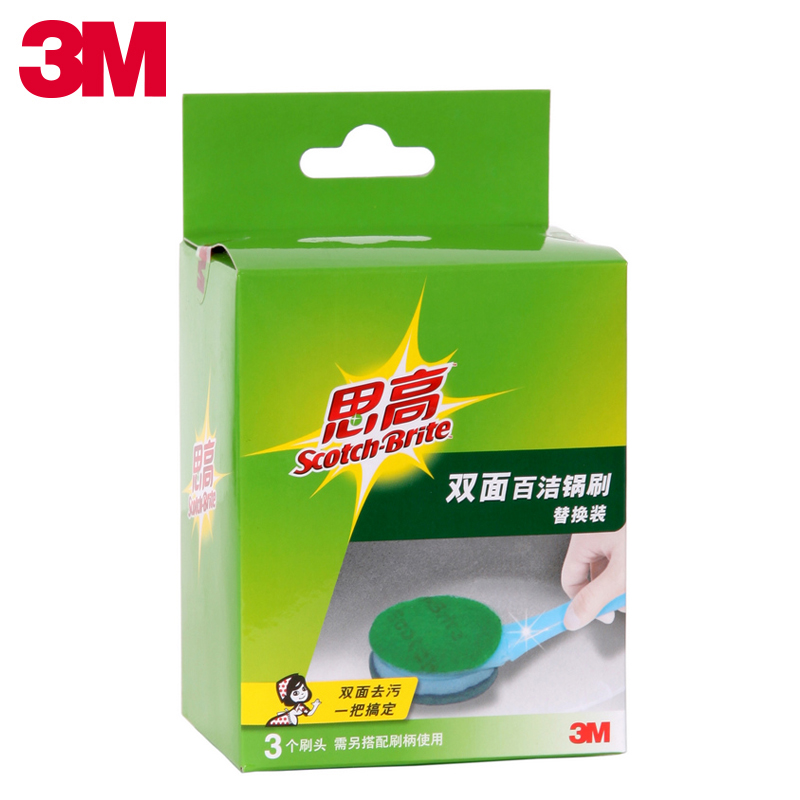 3M Sigh double sided 100 clean pan brush replacement Brush Head Household Kitchen Rag Wash Pan Wash Bowl BRUSH HEAD 6 ONLY FIT
