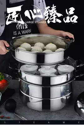 Steamer extra-large 304 stainless steel three-layer thickened household 36 40cm steamer gas induction cooker commercial soup pot