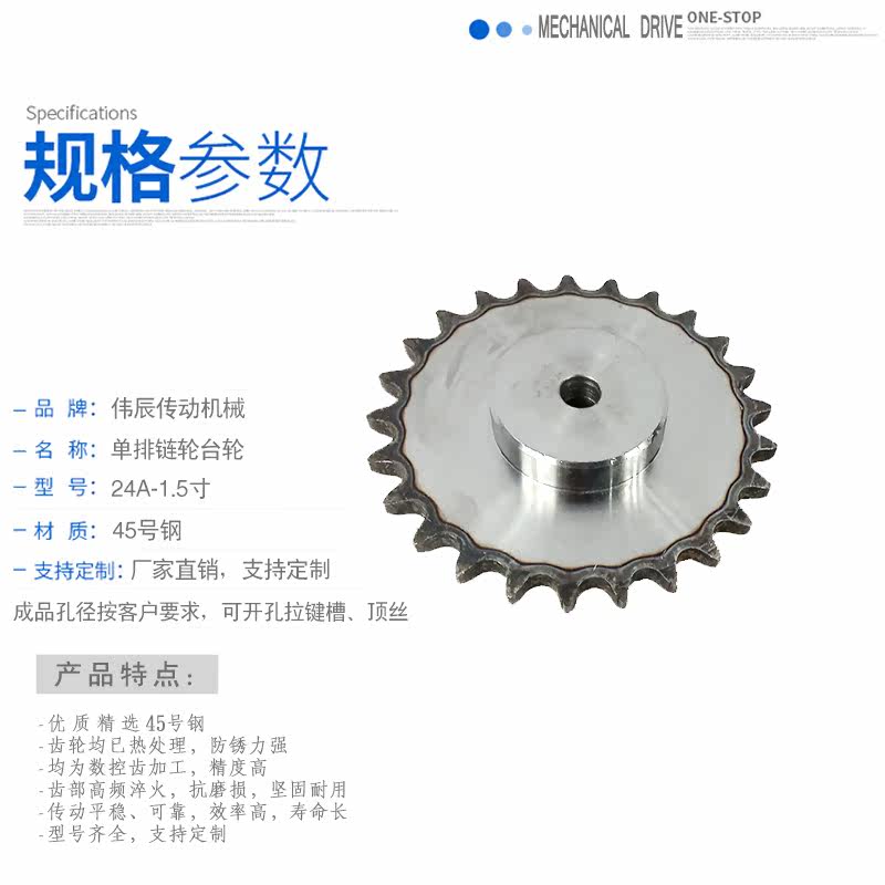 Single row 1 5 inch sprockets with 24A short pitch precision roller chain 9 teeth -20 teeth 45 Number steel quenching motor transmission