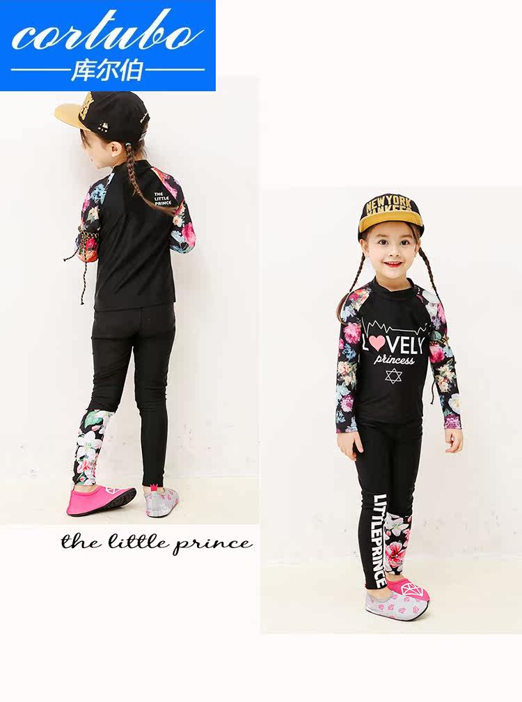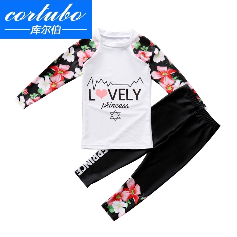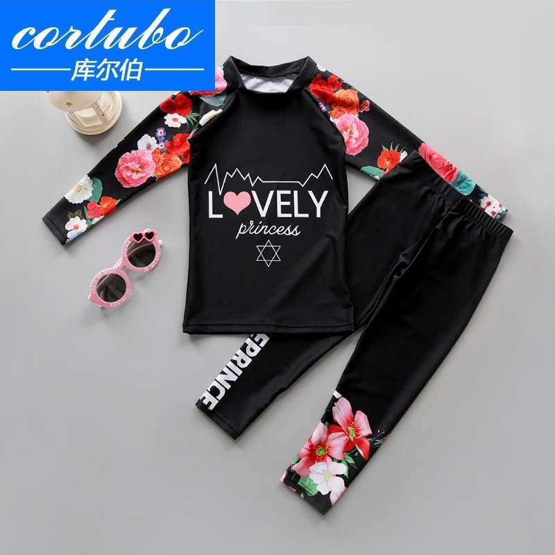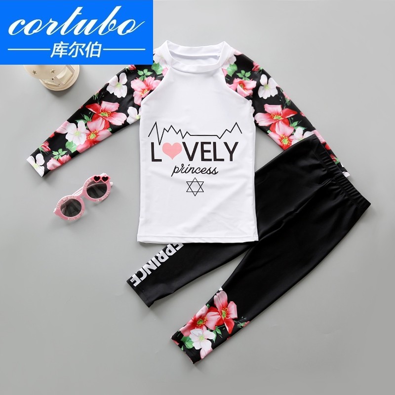 CORTUBO children's swimsuit Girls two-piece middle and large children's students long-sleeved pants Sunscreen quick-drying wetsuit Child treasure