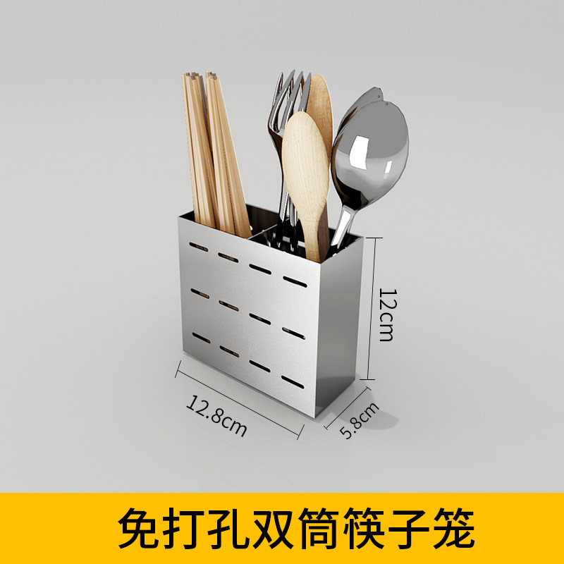 Chopsticks shelve 304 stainless steel chopstick cylinder free of punching wall-mounted household draining chopstick cage spoon containing