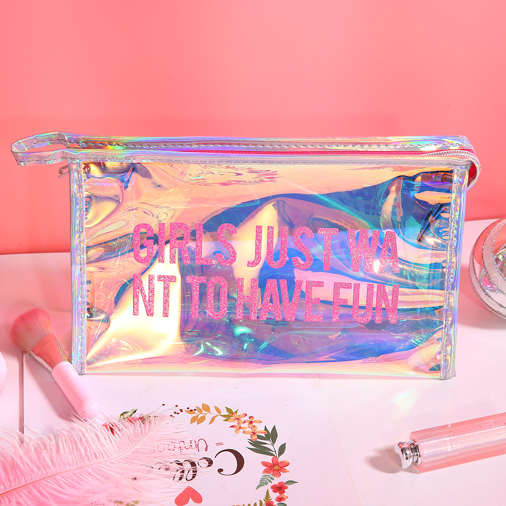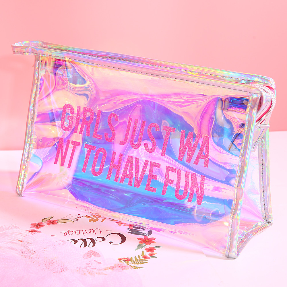 In teenage girls transparent makeup bag Han edition of simple PVC laser jelly package female pen bag to collect wash bag girl