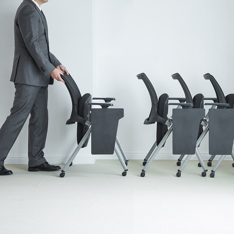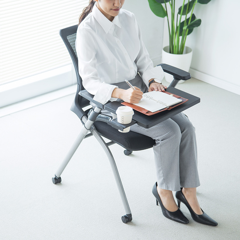 Japan SANWA Mountain industry Folding Metal Conference Chair Mesh Chair Training Chair With Writing Board Press Chair Reporter Chair