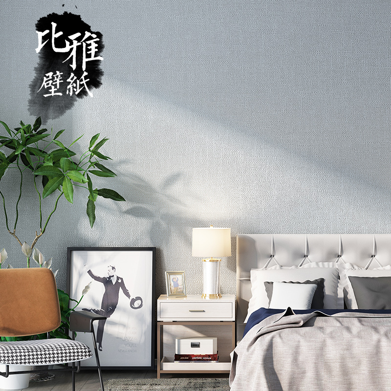 Nordic style pure colored Japanese linen wallpaper modern minimal bedroom living room study gray pale wallpaper cloth