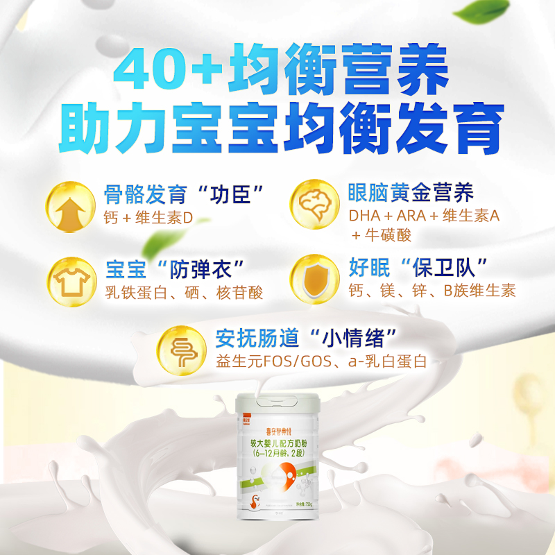 Xi'an Zhidian Yue 2 stage lactoferrin DHA baby milk powder containing prebiotic choline 6-12 months 750g*1