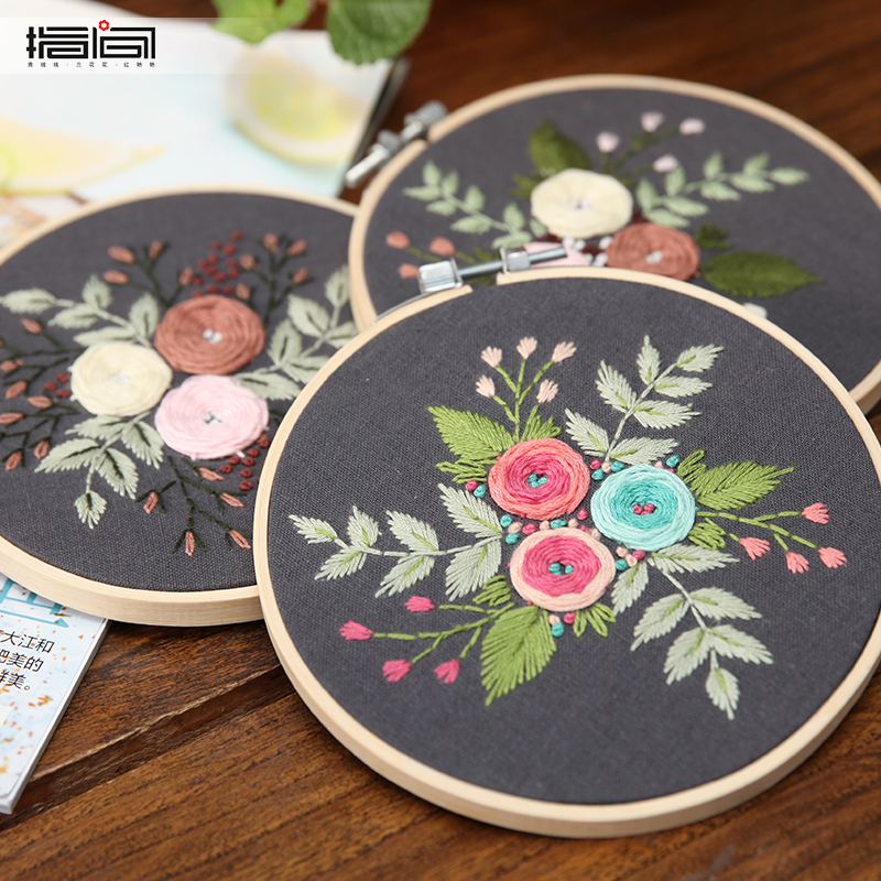 Between the fingers European embroidery diy material package Handmade creative beginner cloth art kit Simple plant flower 3d