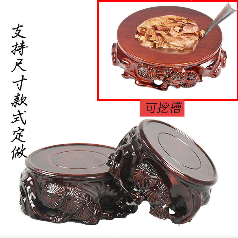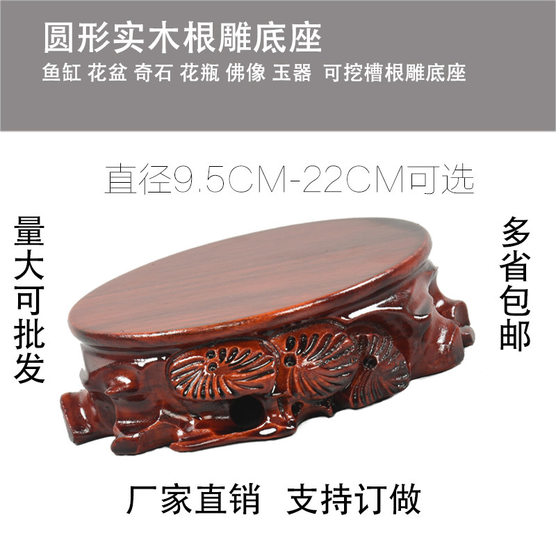 Solid wood engraving pendulum piece base round flower pot bottle chishstone head wooden depository can dig groove Buddha root carving handicraft
