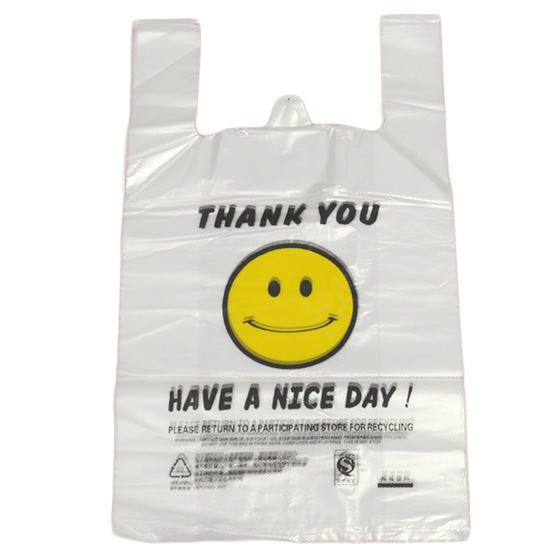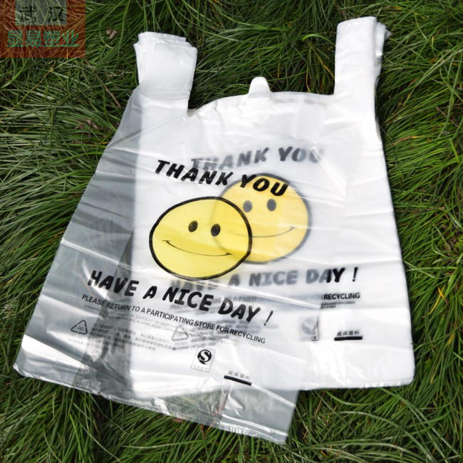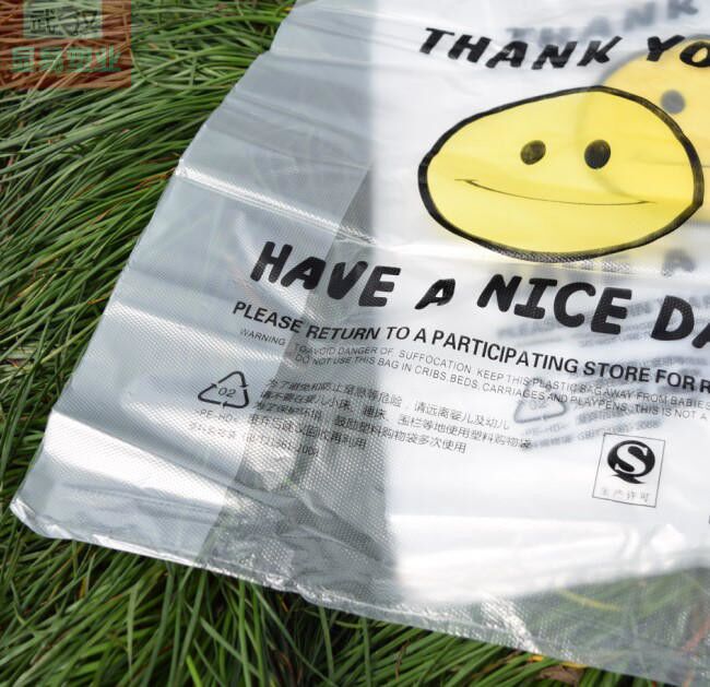 Thickened smiling face bag supermarket shopping bag transparent vest bag plus size medium household food plastic bag small