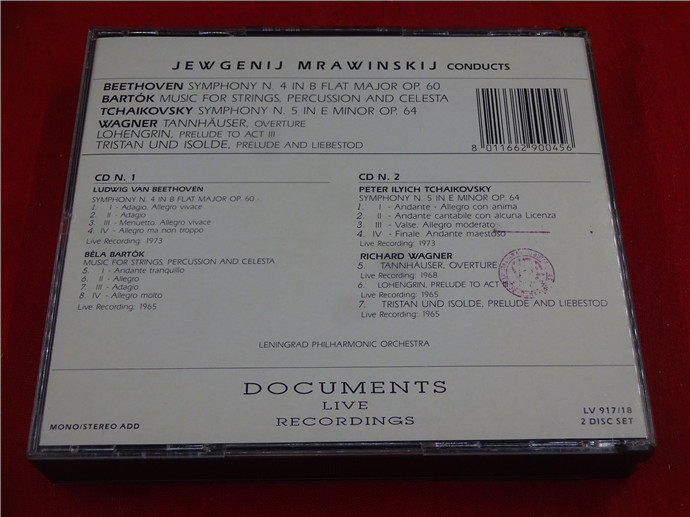 Mravinsky Beethoven Tchaikovsky Bartok 2CD Serve * to seal well 8984