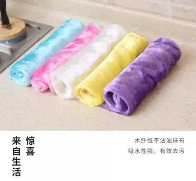5 pieces of oil in addition to wood fiber dish towel kitchen non-stained oil dishwashing cloth household rag thickened household cleaning towel