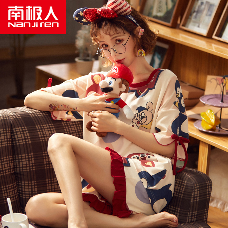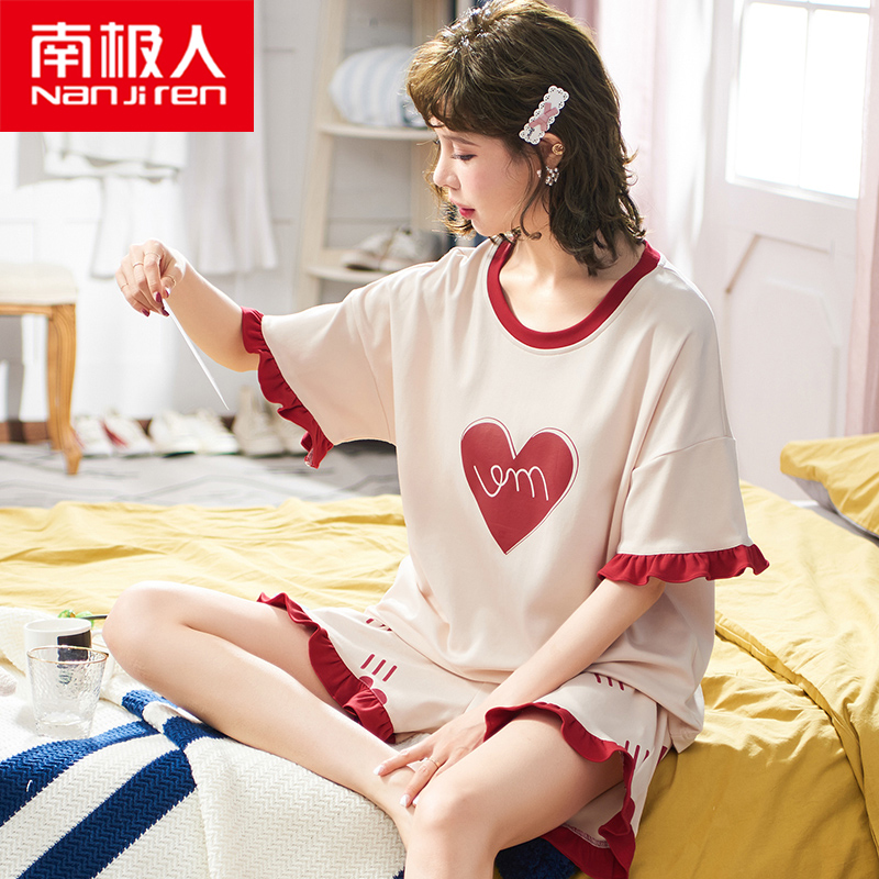 Antarctic pajamas women's summer short-sleeved cotton two-piece suit home clothes Korean cartoon student cotton thin pajamas