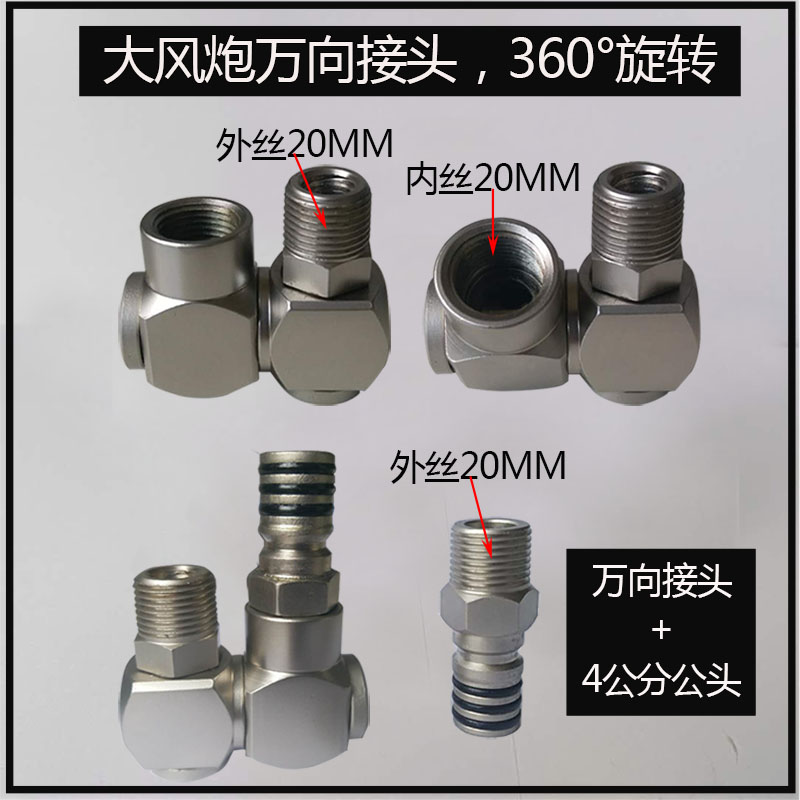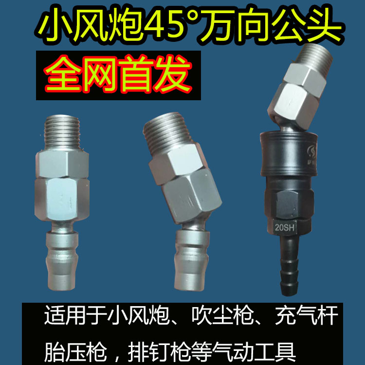 Strong wind cannons to pick up small pneumatic wrench C type small pneumatic wrench 45 ° universal male head C type of wind cannons 45 ° universal head double male screw joints full steel single valve with switch hens big wind cannons 4 sub-head big