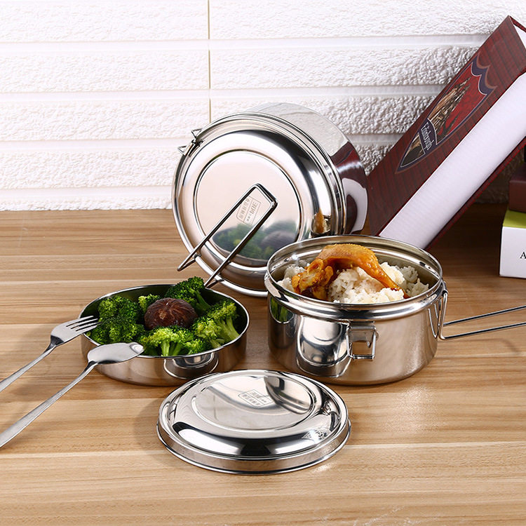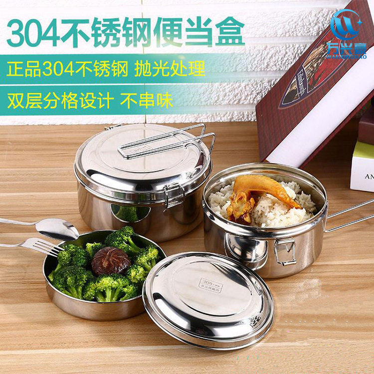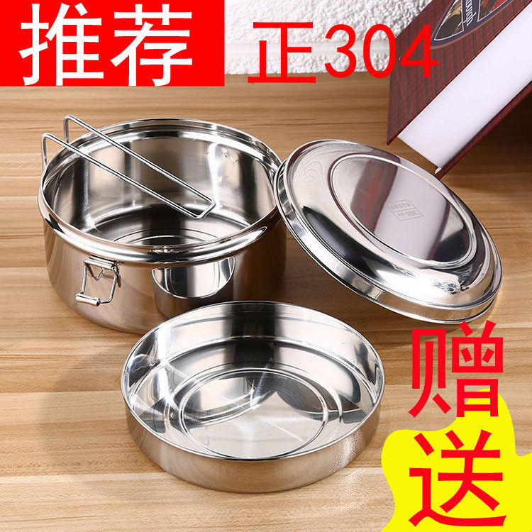 Thickened 304 stainless steel round lunch box lunch box divided children's lunch box student canteen steamed lunch box lunch bowl box