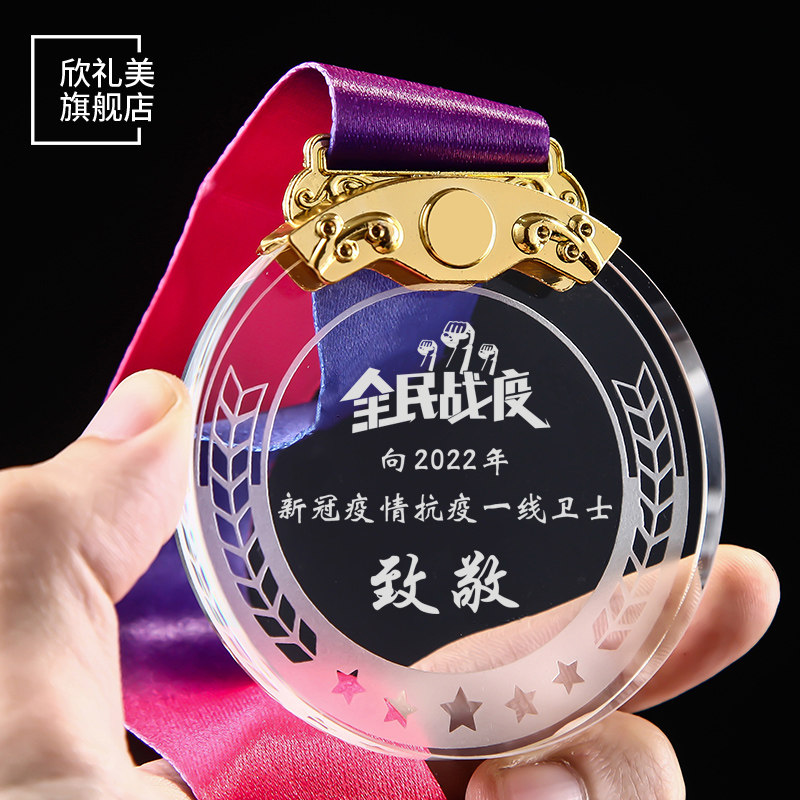 Crystal trophy listed to be customized to do anti-plague volunteer medal games basketball competition Glazed Memorial Badge