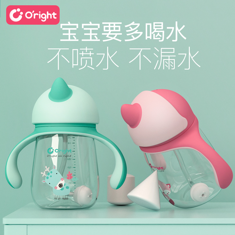 Oright Baby with straw cup Kindergarten learning drinking cup Leak-proof drop-proof milk-choking milk Children's drinking cup Silicone mouth