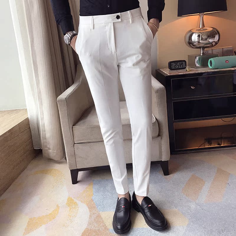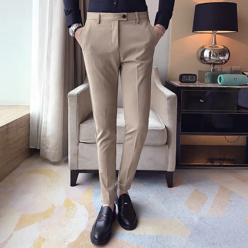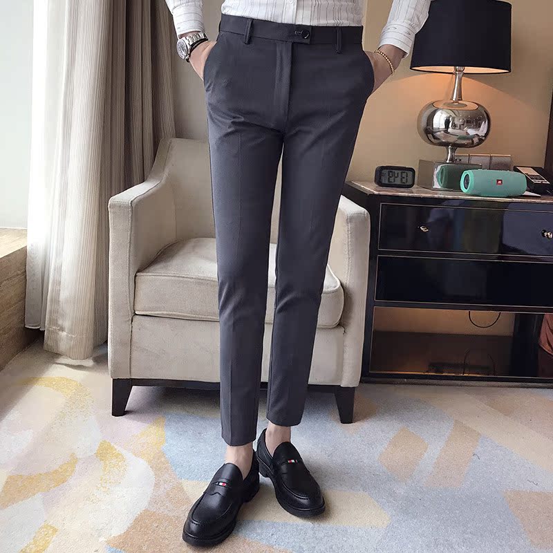 Summer new solid color trousers casual trousers men's pencil pants Korean version of business suit pants Slim trousers men's models