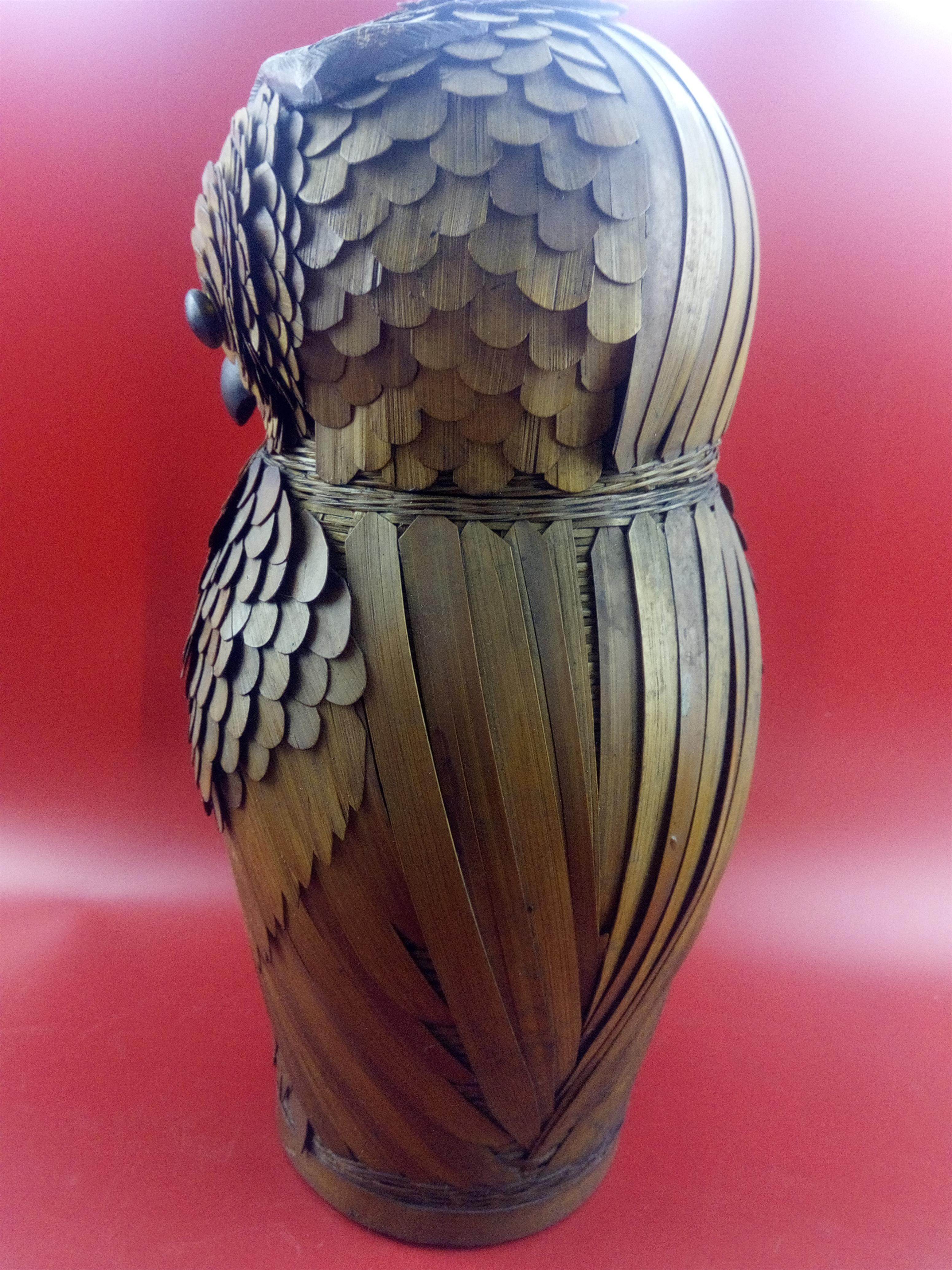 During the period of earning foreign exchange, pure handmade bamboo weaving craftsmanship gift decoration Folk owl bamboo art storage box decoration