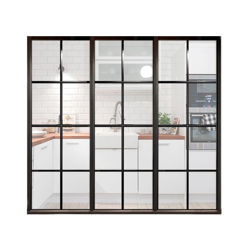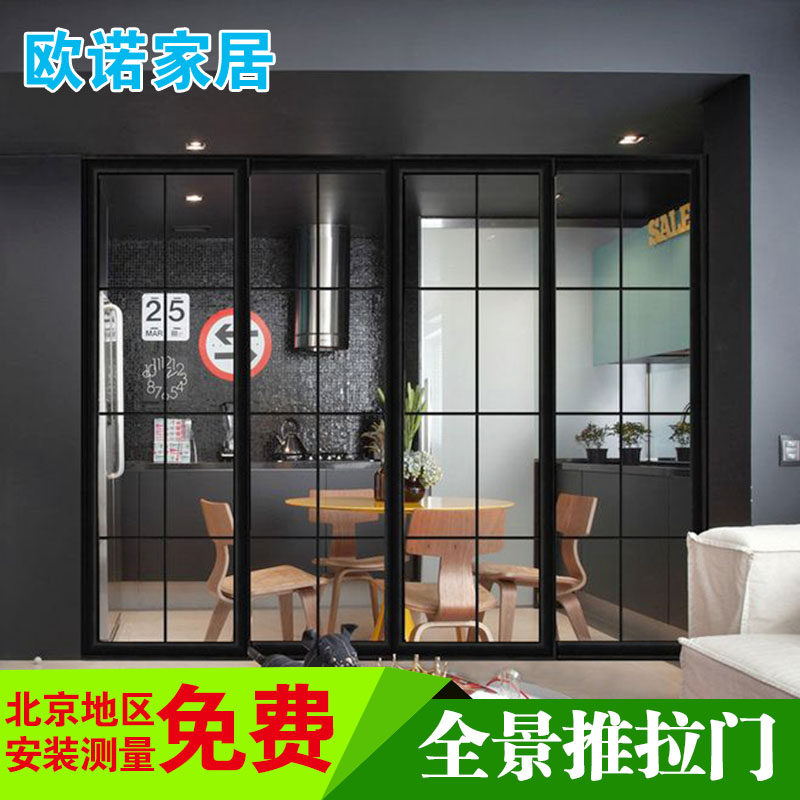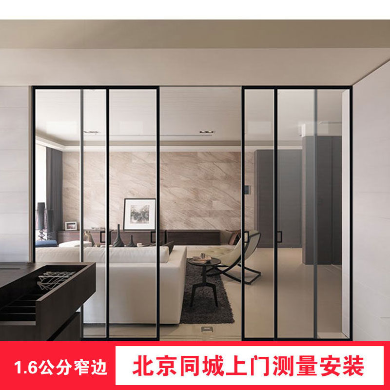 Black narrow frame sliding door custom kitchen powder room balcony aluminum magnesium titanium alloy glass partition sliding door custom