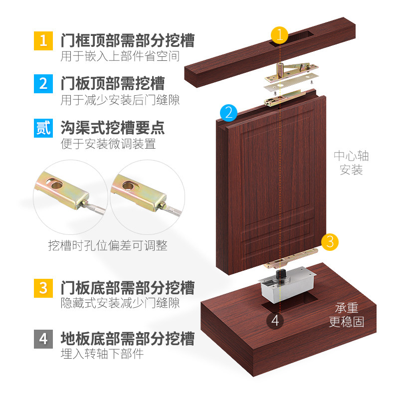 Wealened 360-degree shaft wooden door upper and lower hinges hidden door shaft, Earth shaft, rotating shaft, hidden hinge