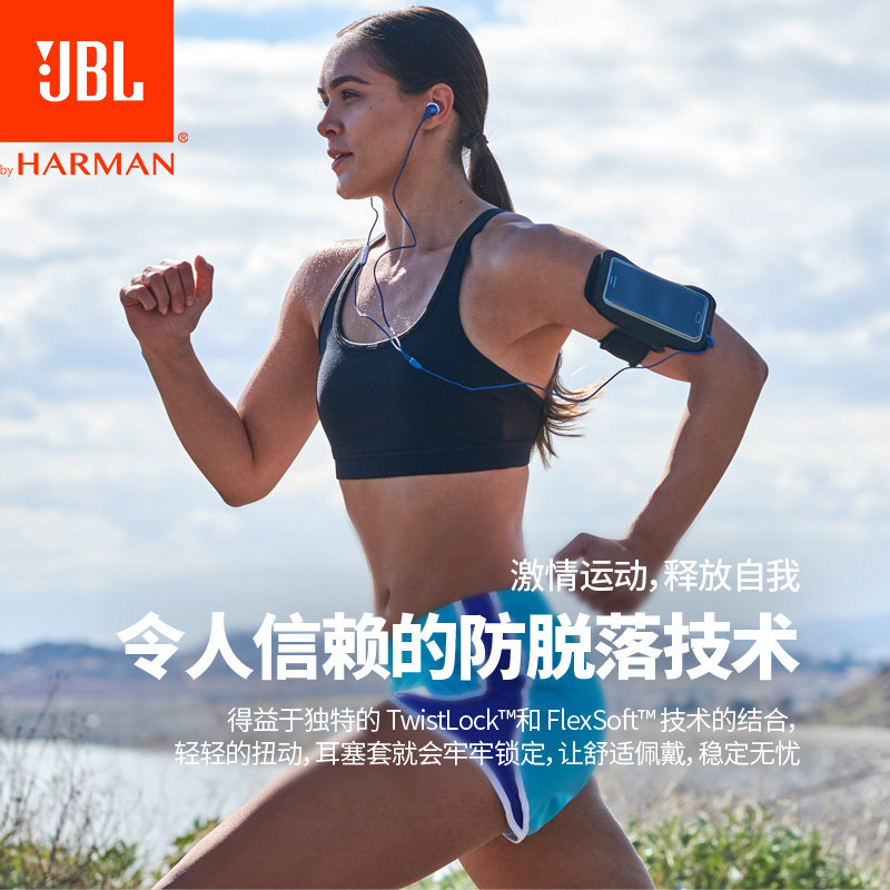 JBL RUN2 wired headset in-ear sports waterproof running mobile phone line control call game subwoofer earplugs