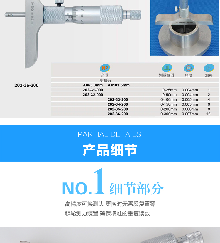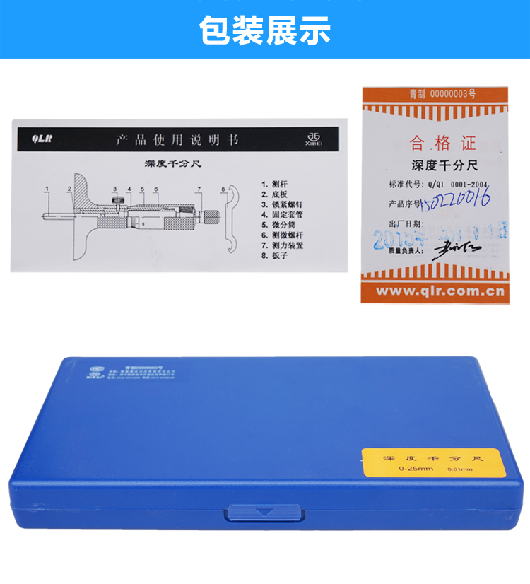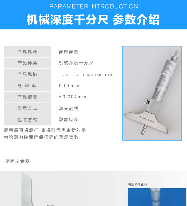 Qinghai Qingjian depth micrometer hole depth measurement spiral micrometer 0-25 0-50 0-100mm0 01