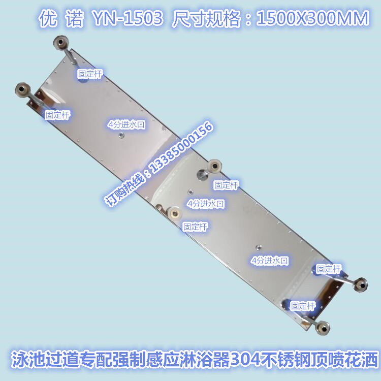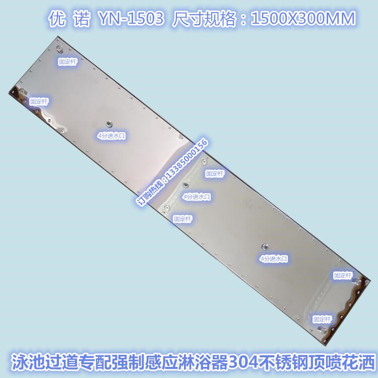 Manufacturer customized hotel swimming pool gangway induction forced shower 304 stainless steel shower head 1500X300