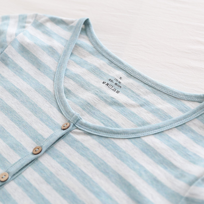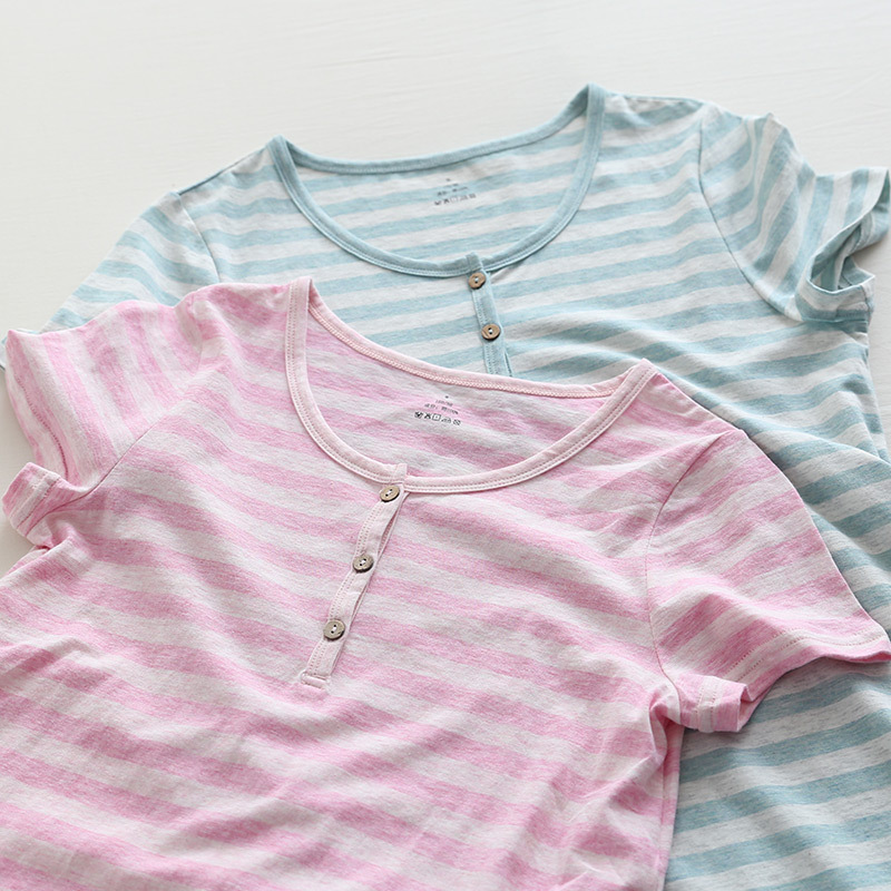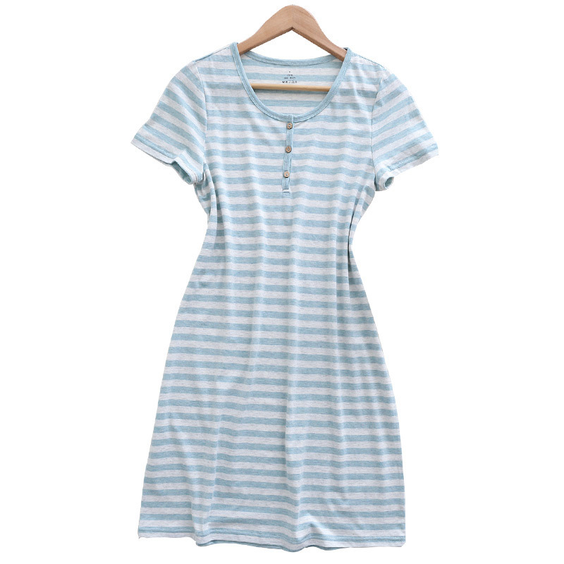 Japanese-style soft summer Tianzhu cotton nightdress pure cotton striped short-sleeved ladies pajamas good product special price comfortable home service