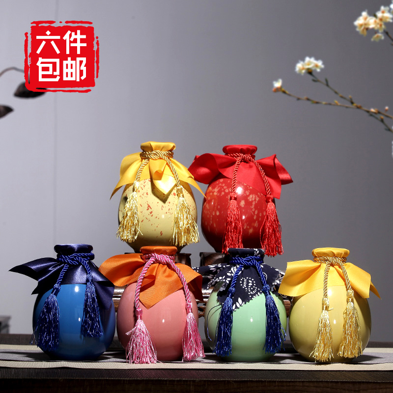 Yixing ceramic wine bottle a pound of 500ml antique color glaze hand-held household wine jug wine altar wedding wine
