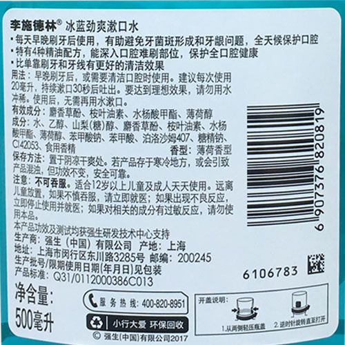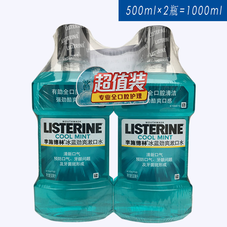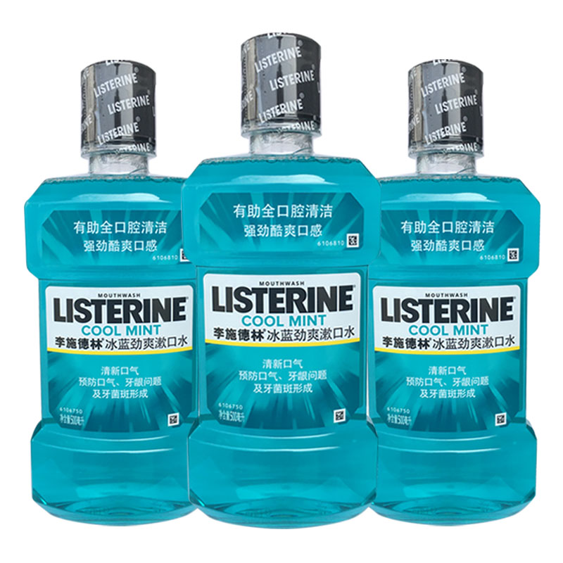 Listerine Mouthwash Ice Blue Jinshuang 500ml*3 bottles=1500ml Remove bad breath plaque fresh breath