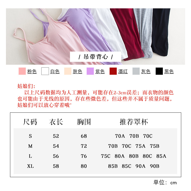 Spring and summer one-piece camisole with chest pad women's long version bra underwear outer wear inner top white bottoming summer