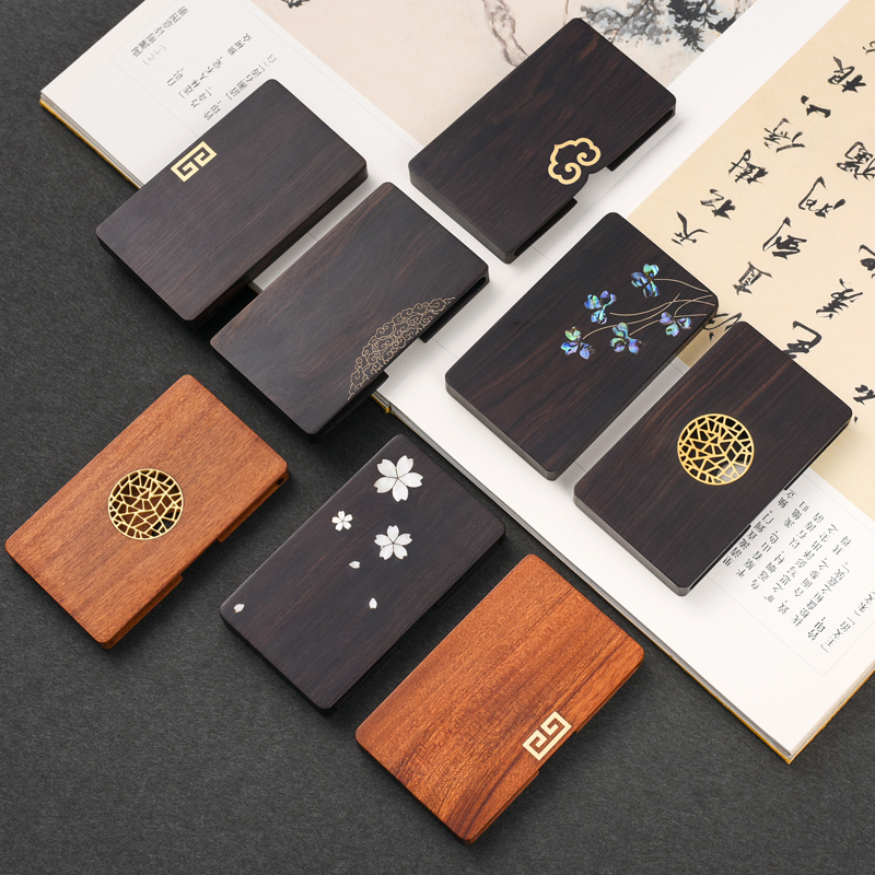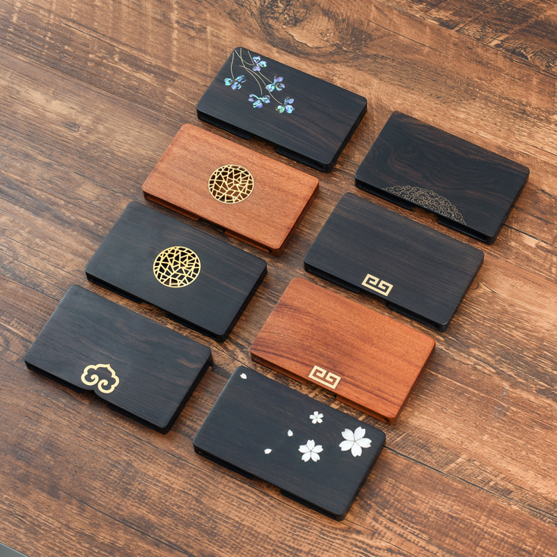 Complex classical Chinese style mahogany high-grade business card holder exquisite creative ebony inlaid copper inlaid business card box sent men's ladies corporate company souvenirs business gifts custom logo engraving